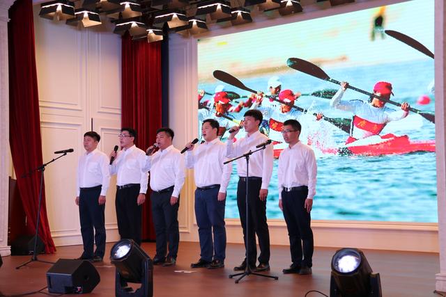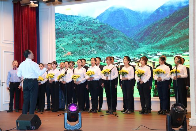 ▲金年会金字招牌财務部、旅投酒店管理公司、龍旅信科公司合唱《愛我中華》