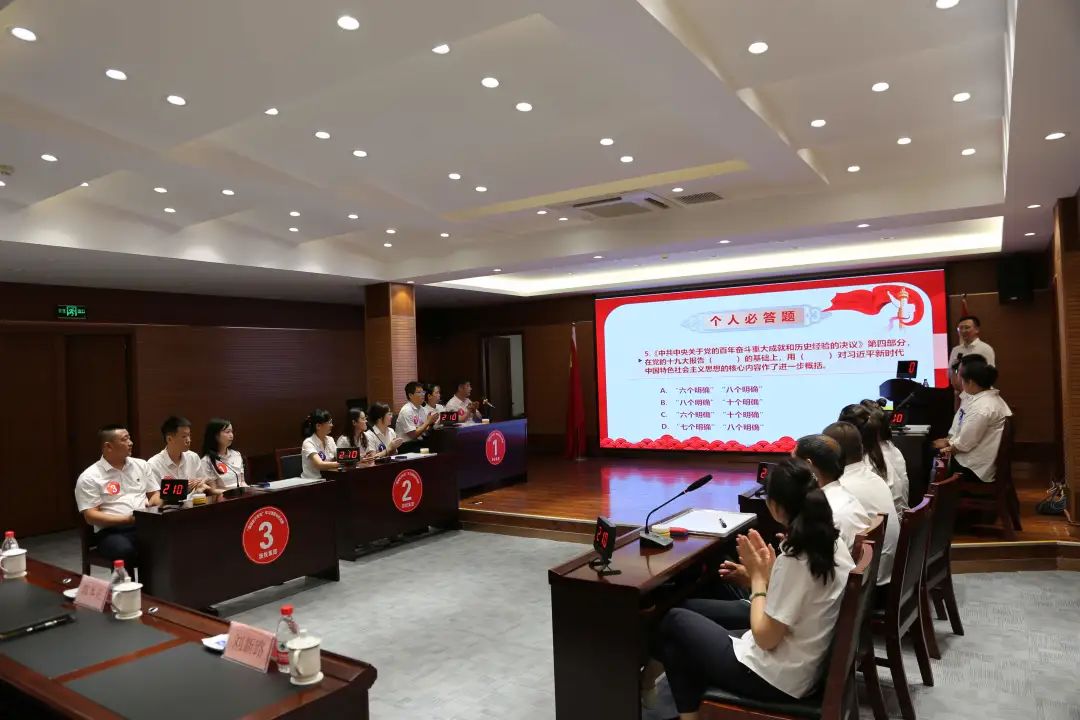 本次競賽結合推進“能力作風建設年”活動和黨史學習教育常态化長效化,内容涵蓋了黨的十九屆六中全會精神、省第十三次黨代會精神、能力作風建設等内容,共設置了個人必答題、小組必答題、挑戰答題、雙人對戰、搶答題五個環節,題型豐富多樣,競賽生動有趣。
