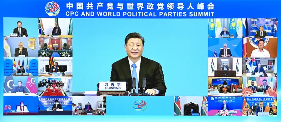 2021年7月6日,中共中央總書記、國家主席習近平在北京出席中國共産黨與世界政黨領導人峰會并發表主旨講話。中昕社記者 李響攝